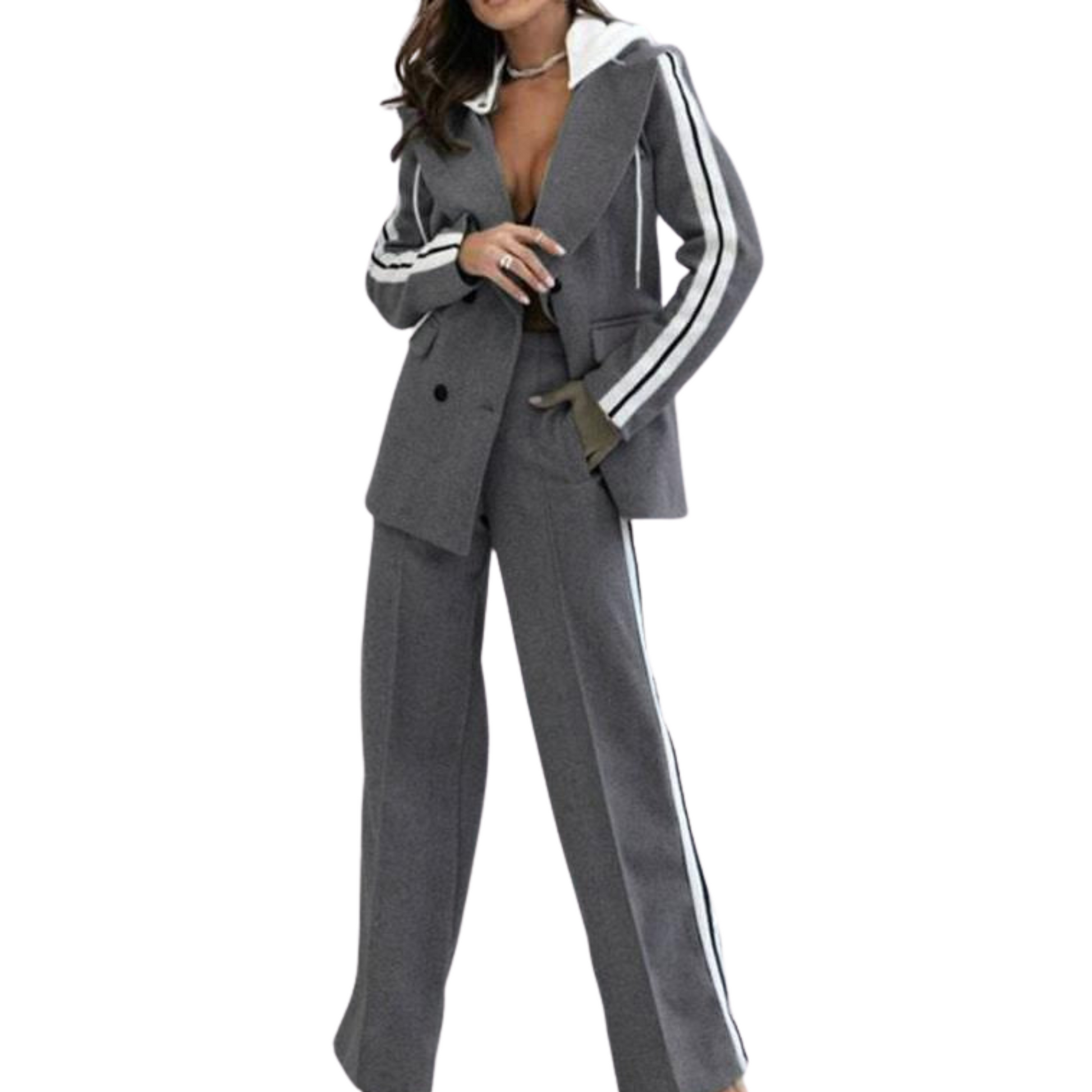- Complete outfit: The hooded top and pants create the perfect combination for a casual, elegant look.